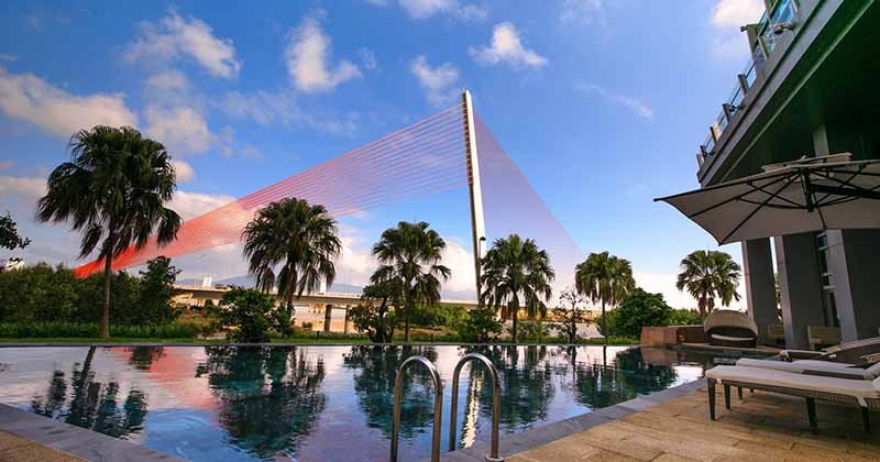 Le design de cet hôtel était à la base inspiré d’une voile gonflé, en harmonie totale avec son emplacement tout prés de l’eau.